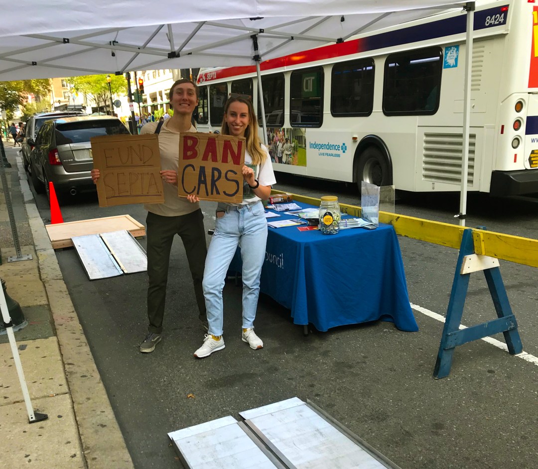 Feet First Philly joined dozens of groups as part of 2019 PARK(ing) Day PHL. Street parking here and all over the world was transformed into mini parks or parklets. Our parklet gave a glimpse at what it would be like if contractors provided a safe and accessible walkway around their work site when blocking sidewalks, which unfortunately is rare.