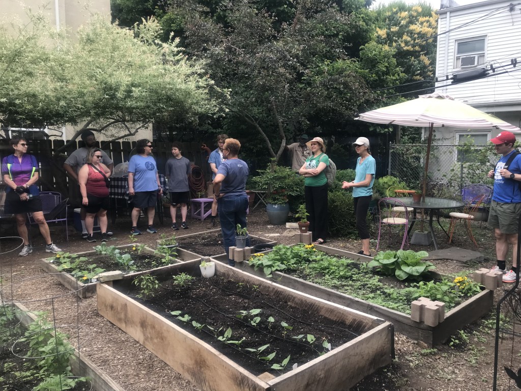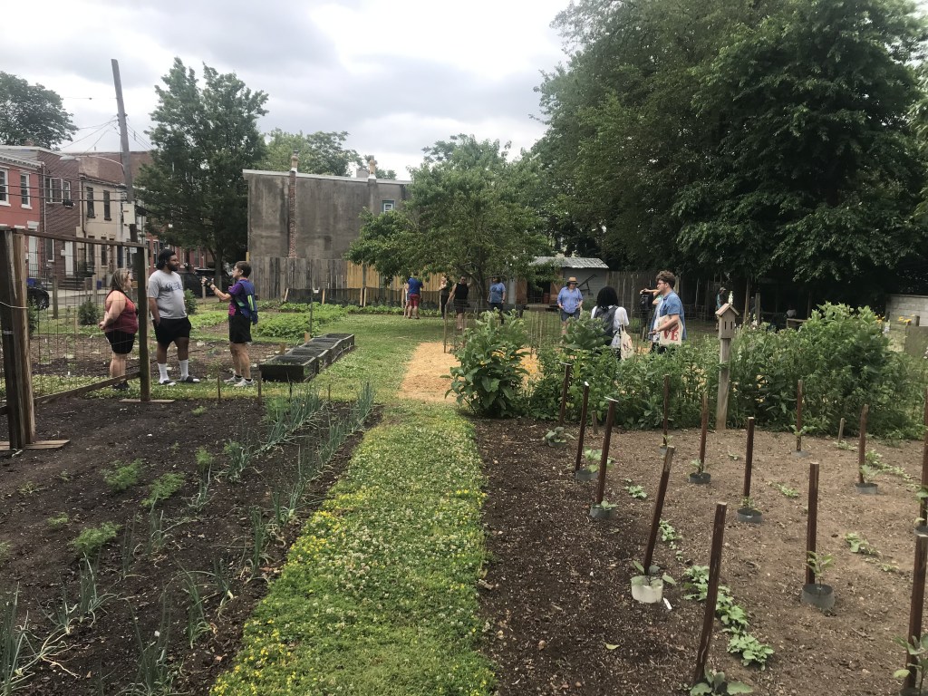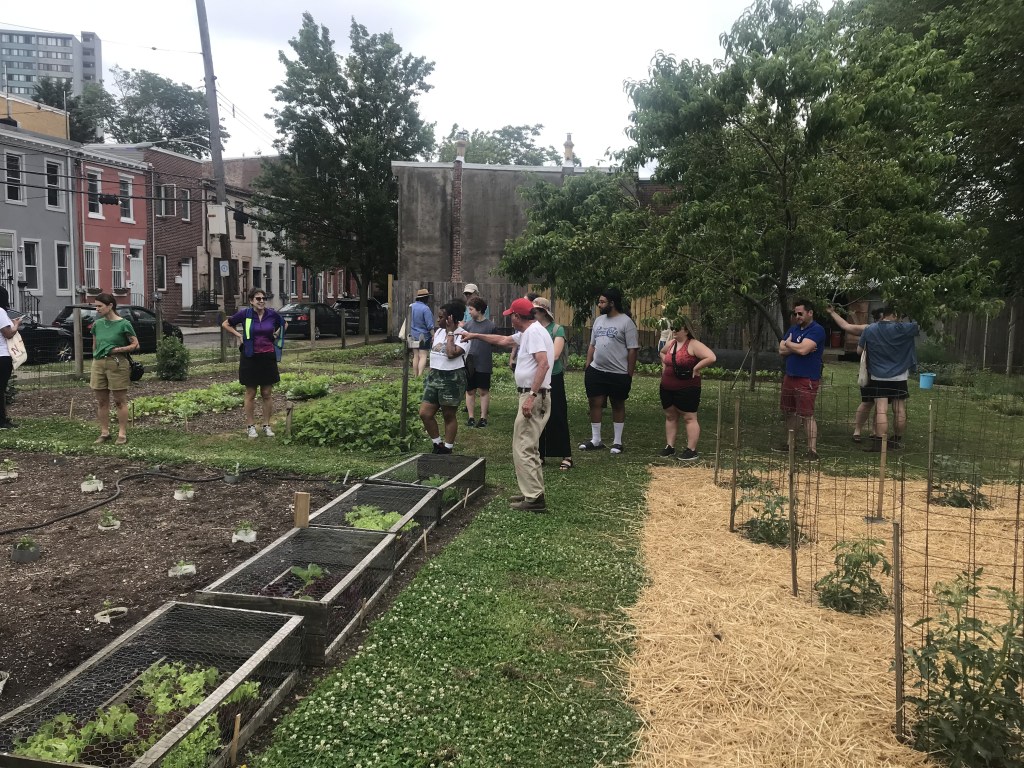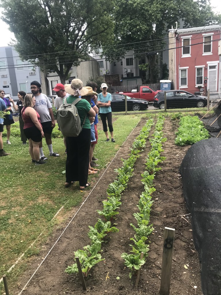On Saturday, June 3rd Feet First Philly and Clean Air Council partnered with Neighborhood Gardens Trust and AARP Philadelphia for a walking tour of three community gardens in Powelton. The walk was well attended and the garden leaders were extremely knowledgeable about their spaces. It was fantastic to learn about each garden, and the positive impacts they all have on their surrounding community, including by improving walkability.