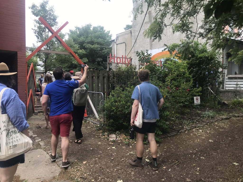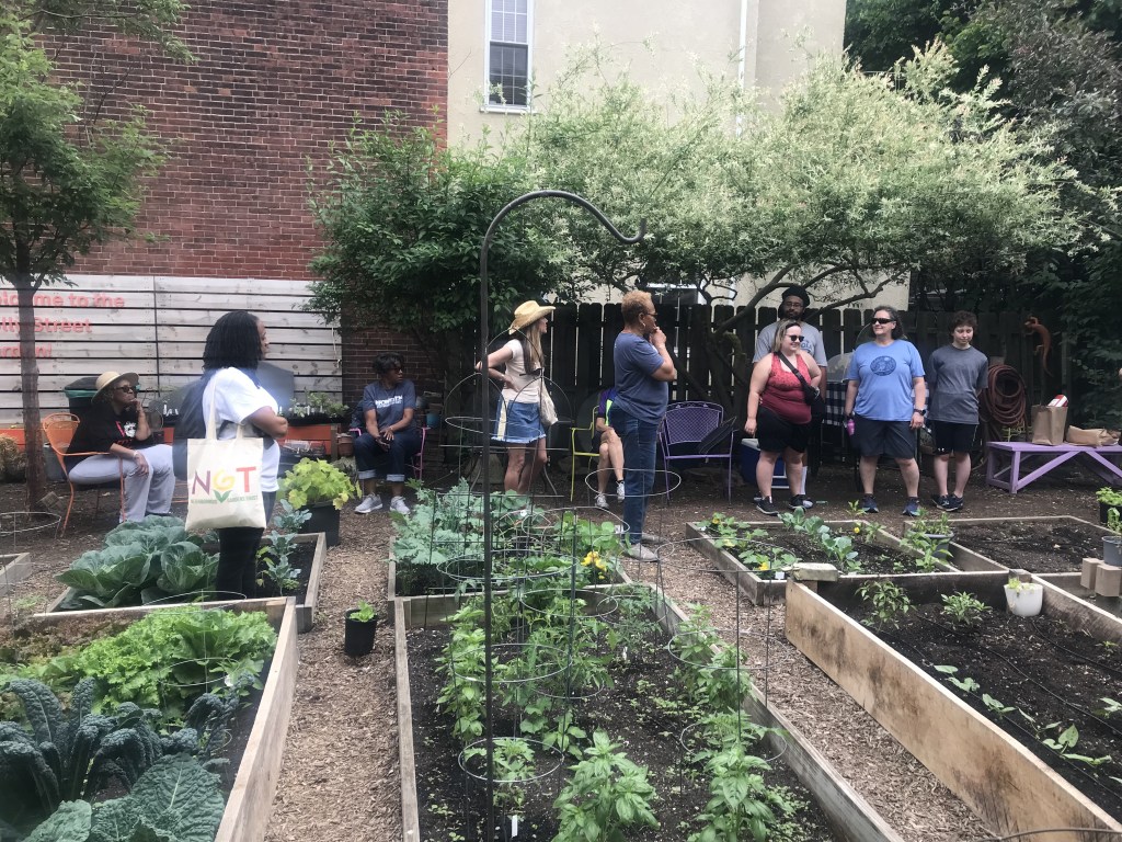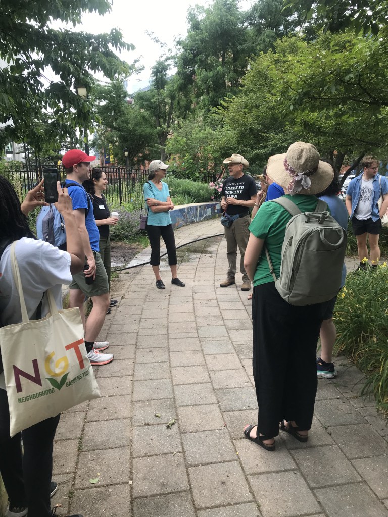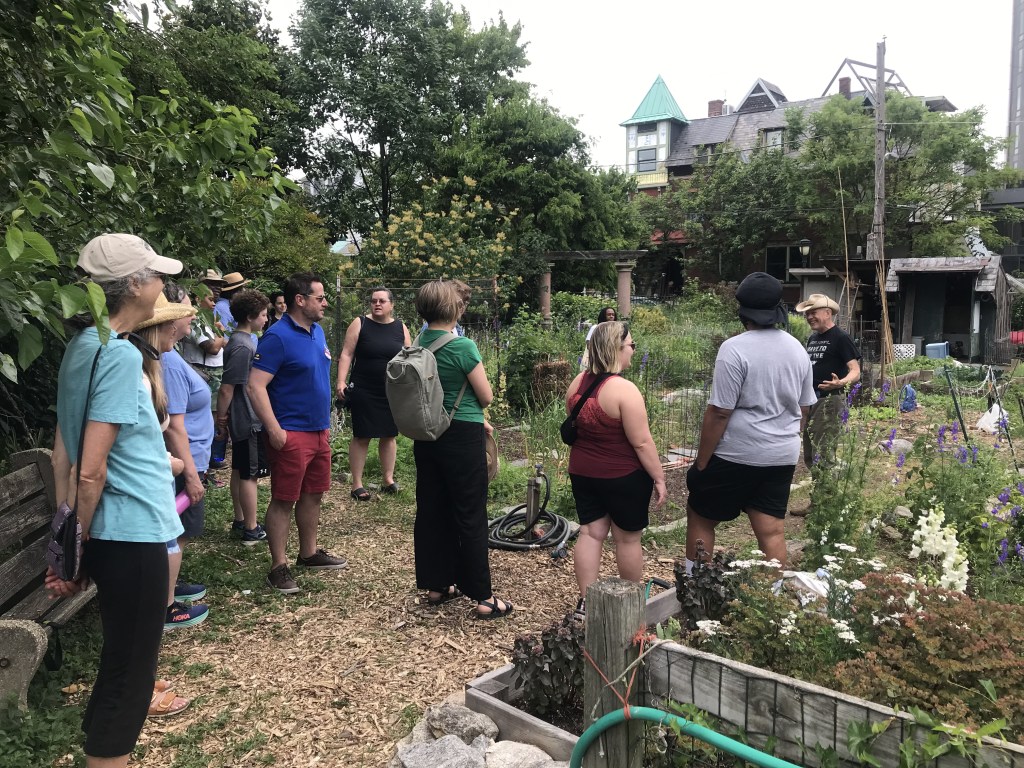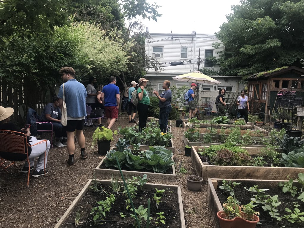 On Saturday, June 3rd Feet First Philly and Clean Air Council partnered with Neighborhood Gardens Trust and AARP Philadelphia for a walking tour of three community gardens in Powelton. The walk was well attended and the garden leaders were extremely knowledgeable about their spaces. It was fantastic to learn about each garden, and the positive impacts they all have on their surrounding community, including by improving walkability.